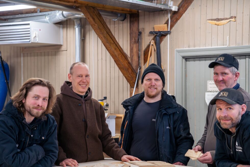 Bildet: Vinner av den kunstneriske konkurransen, Fredrik Tydén (nr. to fra venstre), sammen med snekkere og smeder fra Bygghytta ved Nidarosdomen. Foto: Elisa Kartum NDR