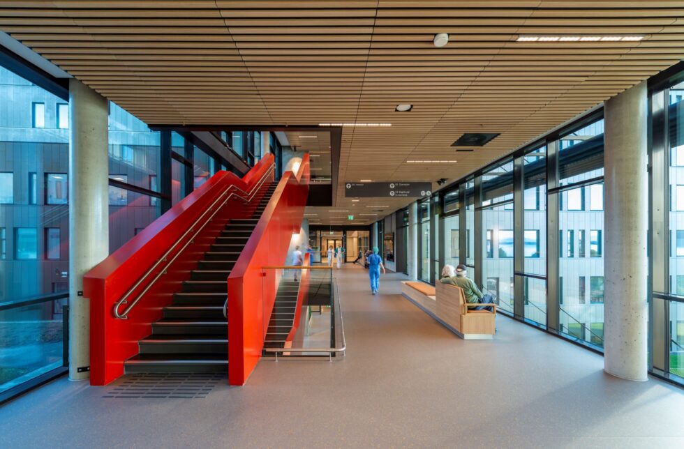 Gulv er ofte en oversett detalj, men på et sykehus har det stor betydning. Det må tåle tung trafikk, rullende senger og krevende rengjøringsrutiner, samtidig som det bidrar til et helsefremmende miljø.