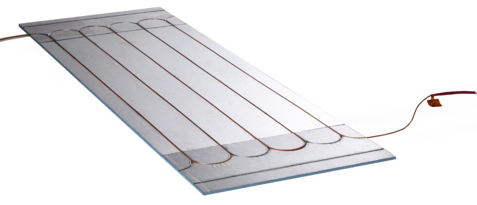 Bildet: Aluboard består av en XPS-plate med et relativt tykt aluminiumssjikt på oversiden. I aluminiumet er det freste spor for varmekabel.