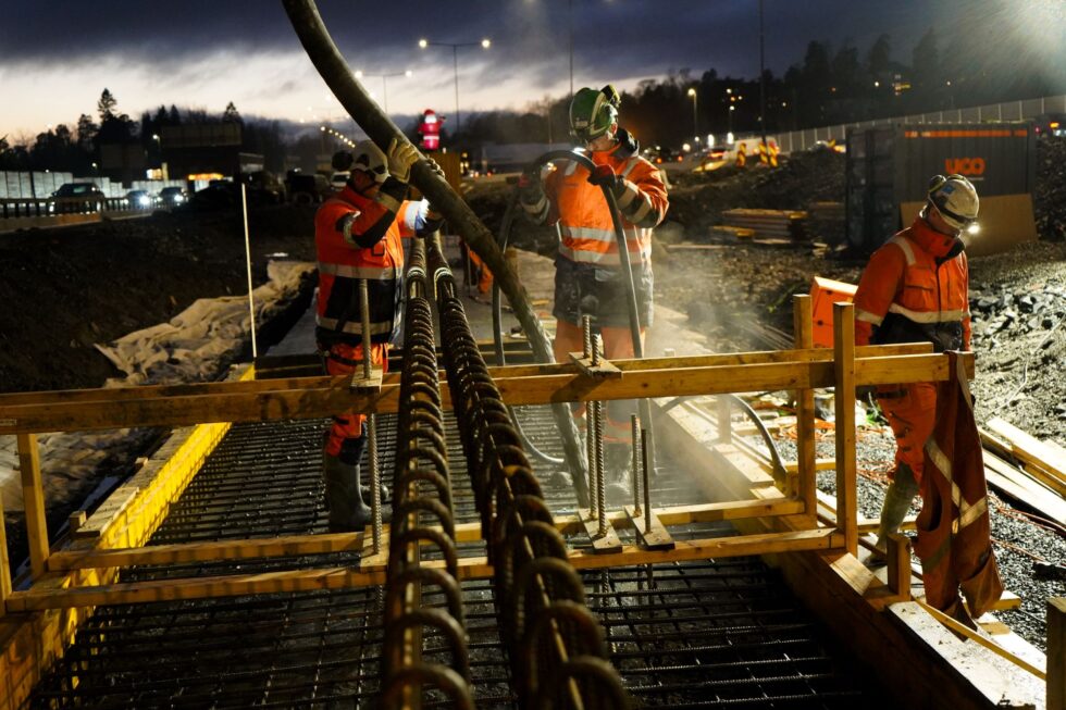 – Vi har nå støpt fundamentet til den nye støyskjermen. Betongen er helt lik annen betong som er i bruk, men med betydelig lavere utslipp fra produksjonen, sier Terje Nystrøm, teknisk byggeleder i Statens vegvesen.
