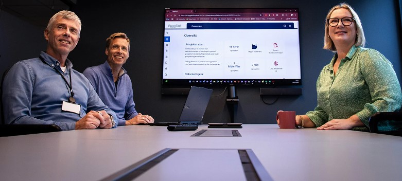 Bildet: Fra venstre Christian Overå Brevik – customer success manager, Øystein Berg – Chief Technology Officer / CTO og Kristine Bergendahl – produkteier i Byggtjeneste.