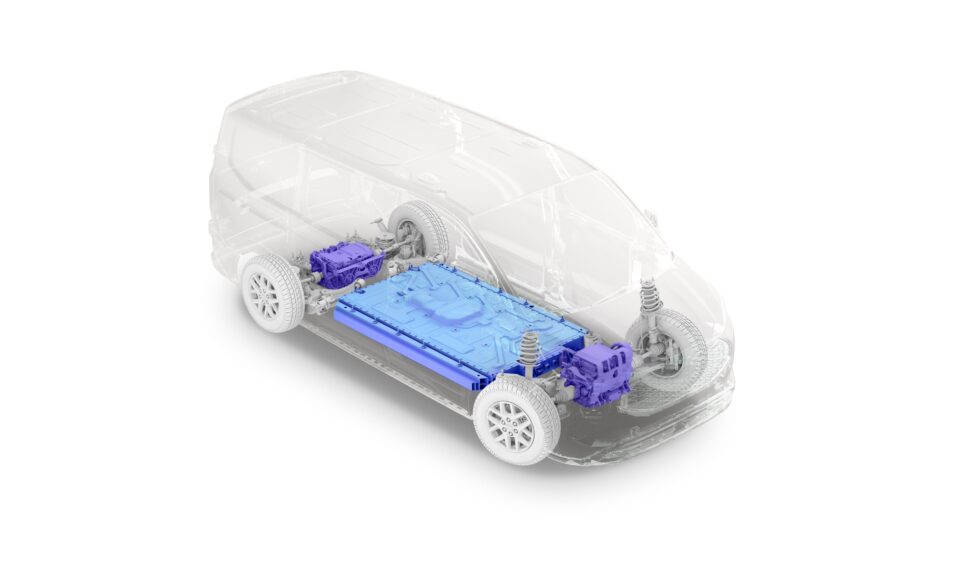 I motsetning til mekaniske firehjulsdriftsystemer der for- og bakaksel er fysisk koblet sammen, er de to elektriske motorene på E-Transit Custom AWD uavhengige av hverandre. Hjulslipp måles opptil 50 ganger per sekund, noe som gjør at systemet kan justere momentet fortløpende for stabilitet og kontroll.