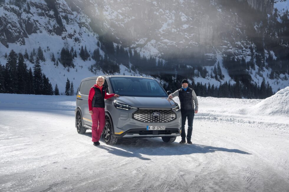 De første norske kundeutleveringene av nye E-Transit Custom AWD begynner i april. Nylig var internasjonale medier invitert til prøvekjøring i de franske Alpene, der modellen ble testet med det nye firehjulstrekksystemet.