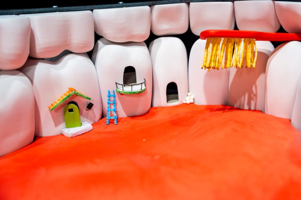 Gjestene skal føle seg «krympet» inne i Jens’ munnhule, der handlingen utspiller seg blant de enorme tennene. Dette krever enestående presisjon. For å sikre det naturtro uttrykket, vil bearbeidingen bli utført med høyautomatisert robotfresing levert av Sørlaminering i samarbeid med Omtre AS. Montasjefirmaet OsloPre er ansvarlig for å installere de enorme tennene i Dyreparken i sommer.