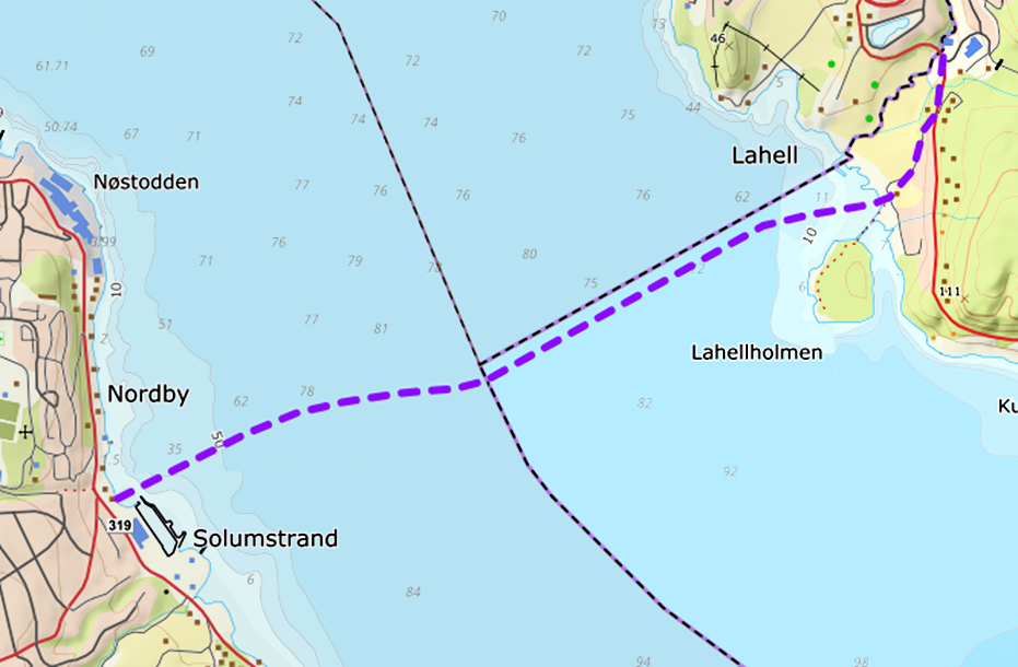 - Løsningen innebærer etablering av overføringsledning/sjøledning fra Lahell til Solumstrand.