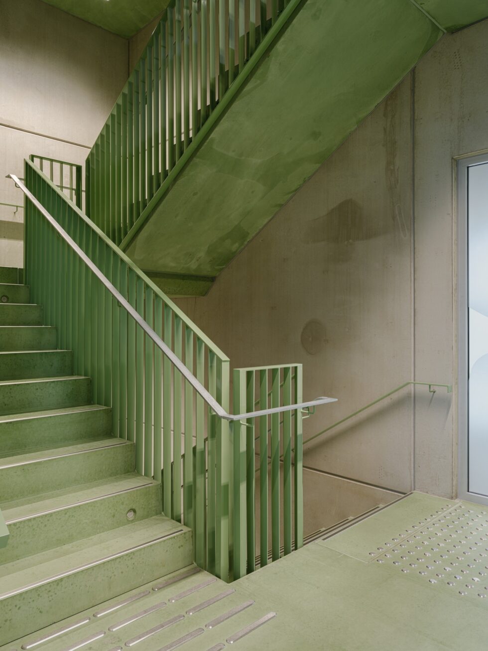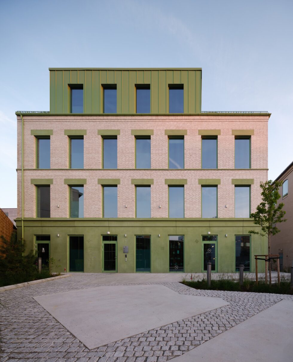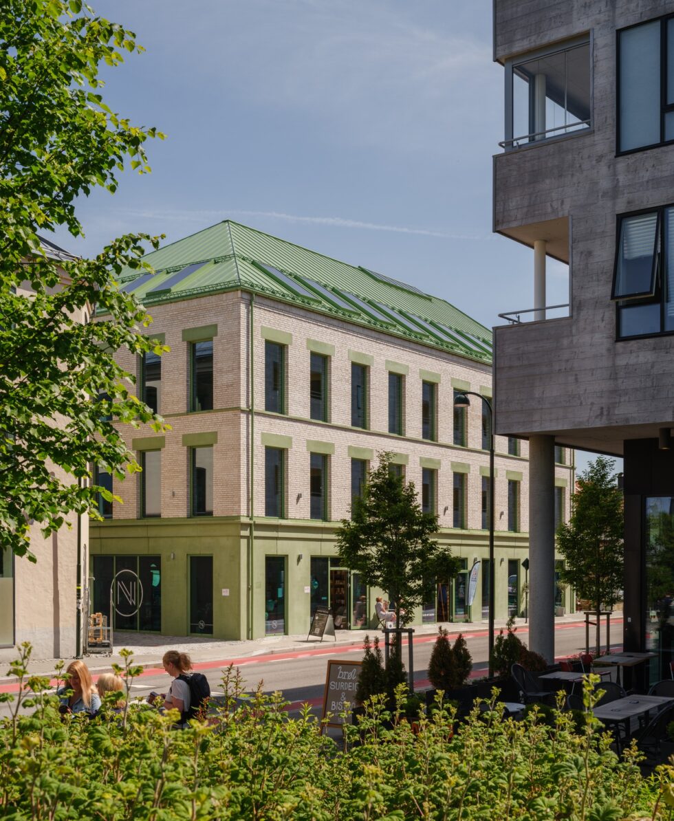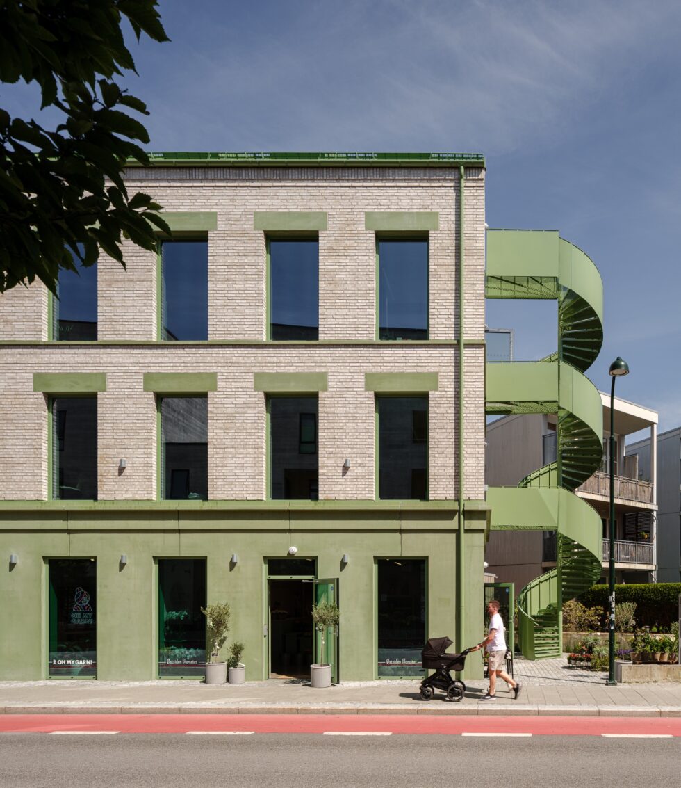 Vakker materialbruk og frisk grønnfarge bidrar til egenart. En aktiv førsteetasje er et positivt tilskudd til gata, og en ny forbindelse gir passasje gjennom kvartalet. Den tiltalende materialbruken er godt synlig også innvendig, med gjennomtenkte løsninger og en enkel, men vakker materialpalett, sier juryen.