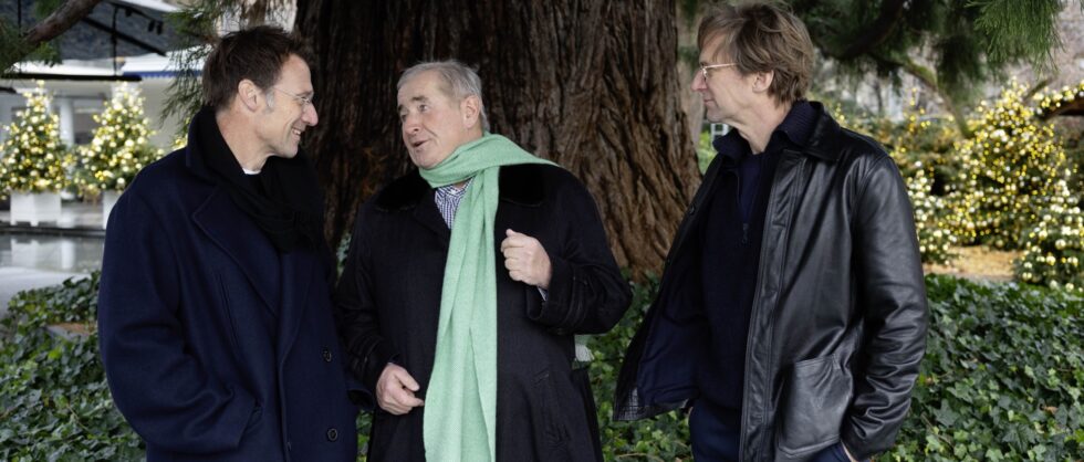 Bildet: Christen Sveaas gratulerer Emanuel Christ (til venstre) og Christoph Gantenbein. Foto: Albrecht Fuchs