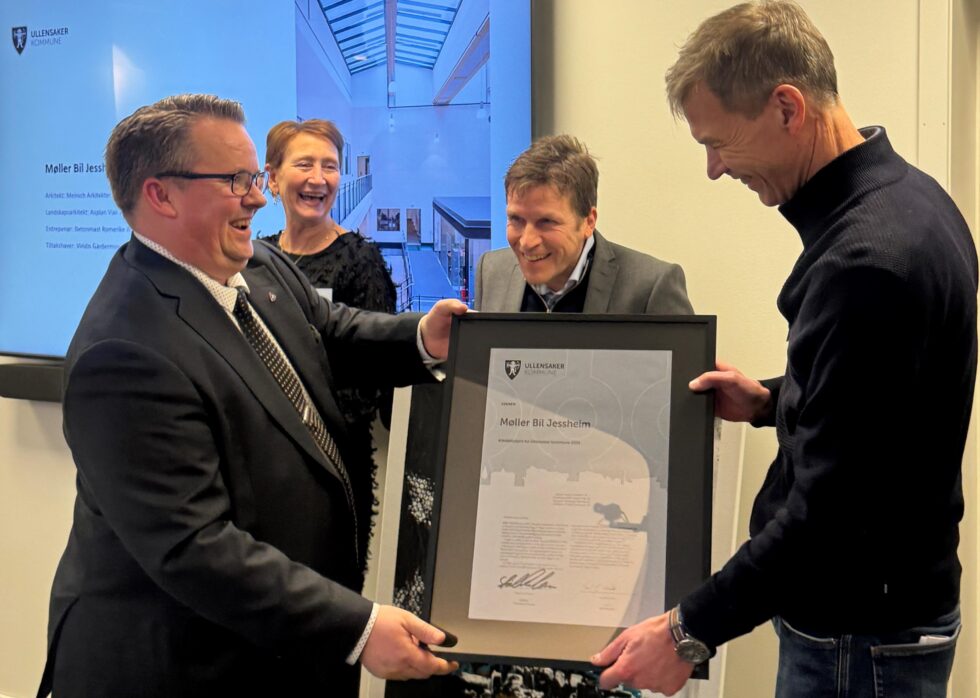 Bilanlegget Møller Bil Jessheim er tildelt Arkitekturprisen for Ullensaker kommune 2025. Anlegget er tegnet av Meinich Arkitekter og eies av Møller Eiendom og Stokke Industrier.