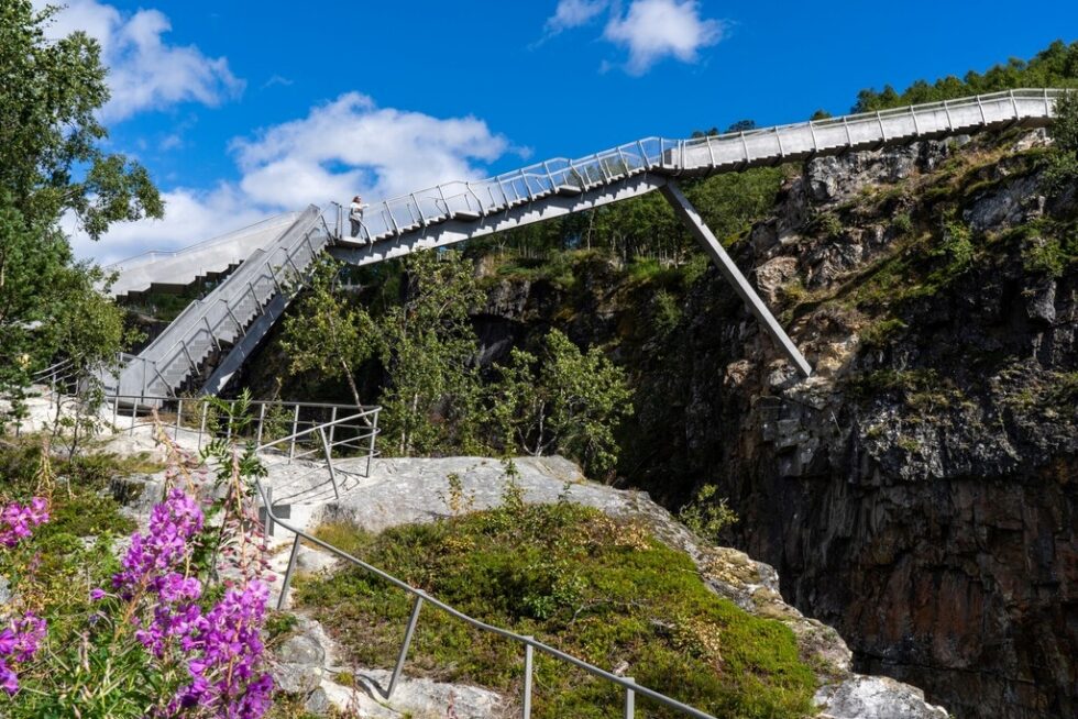 Vøringsfossen project in Norway was awarded a special Bridge Design Award due to its success in achieving something seemingly so simple, yet very hard: elegance and feeling of lightness, while crossing great spans. Steel material can be used in a very utilitarian way with very common shapes and industrial forms, that architecturally-sought genuineness may not be always possible.